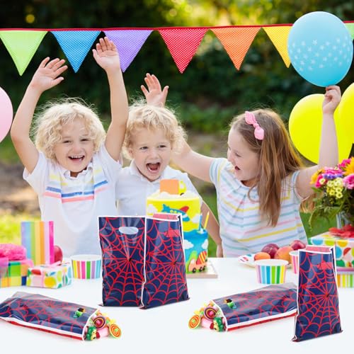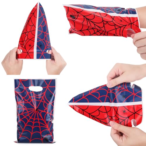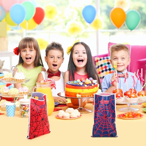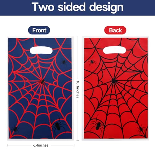- PACKAGE CONTENTS: Set of 40 party favor bags featuring spider web designs – 20 red bags and 20 blue bags for variety and fun