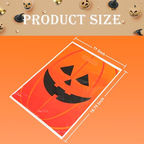 + Free Shipping50‑Pack 11″ × 17″ Jack O Lantern Trick or Treat Goody Bags – Durable Plastic Halloween Party Favor Bags
