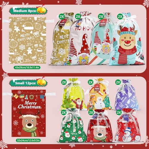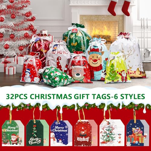- Package Included: Total 32pcs gift bags for christmas with 32pcs tags. 6pcs x-large christmas bags, 6pcs large christmas bags. 8pcs medium christmas bags. 12pcs small christmas bags, enough satisfy your daily use.